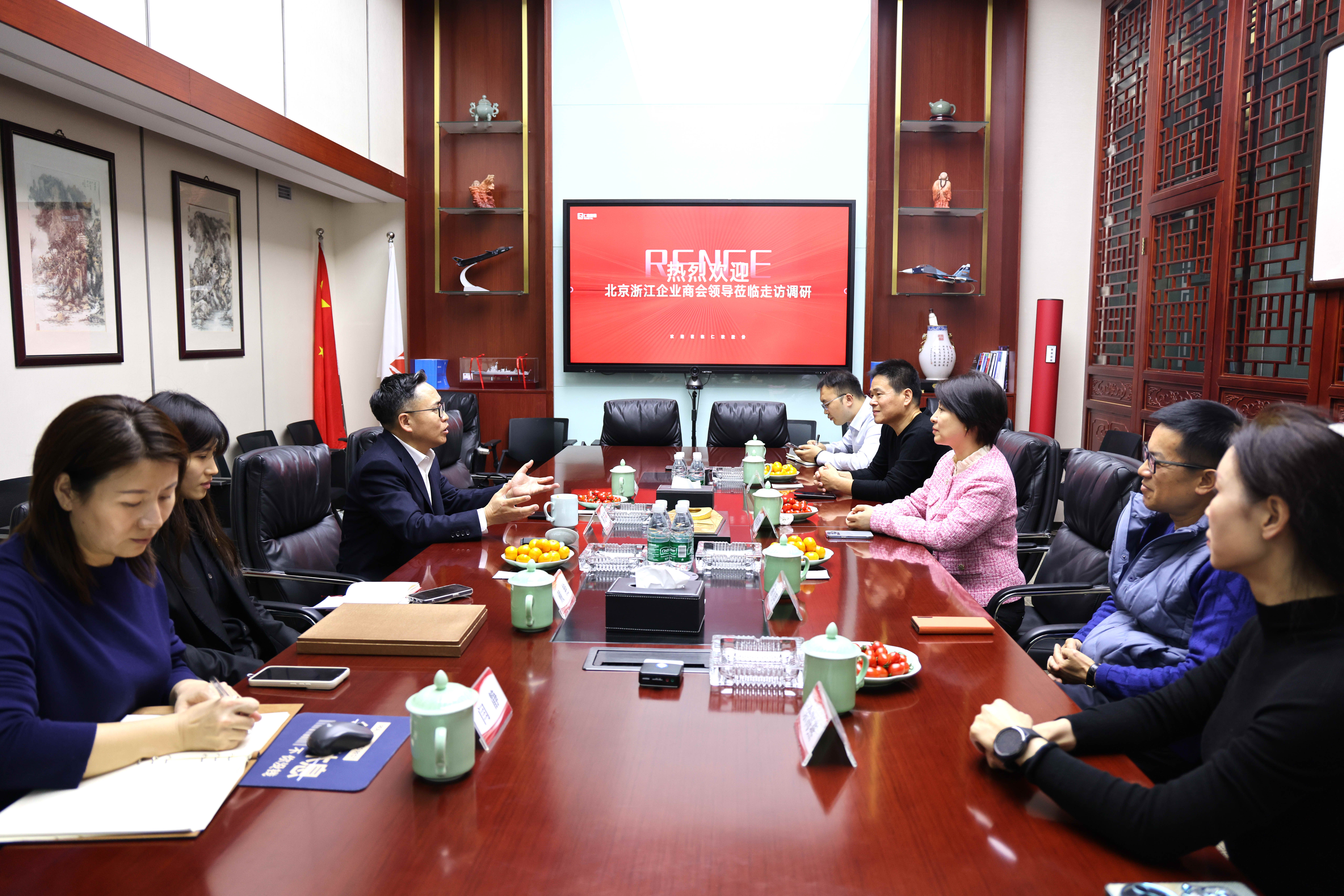 3月14日,北京浙江企業(yè)商會秘書長孫國英、副會長陳飛翔、夏臘放,理事余海燕,副會長單位財通證券股份有限公司北京分公司劉博偉一行走訪副監(jiān)事長單位北京仁歌科技股份有限公司,深入了解會員企業(yè)經(jīng)營狀況,探討合作機會,共謀高質量發(fā)展。