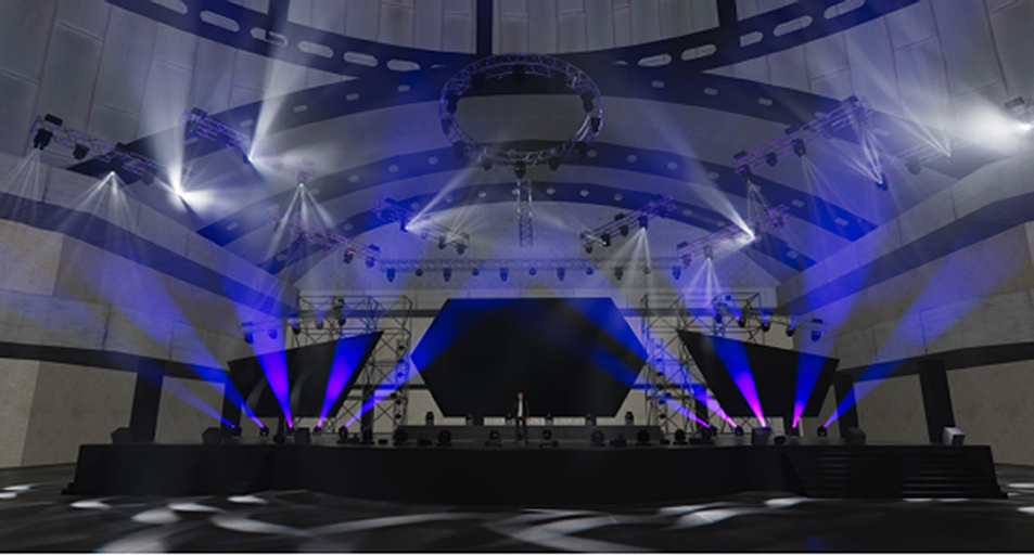 效果呈現(xiàn)是通過可視化軟件(WYSIWYG、UE5、Depence)模擬現(xiàn)場情況,在逼真的建筑環(huán)境中模擬出舞臺燈光,激光,視頻和特殊效果,設(shè)計(jì)應(yīng)具備多種造型手段,
