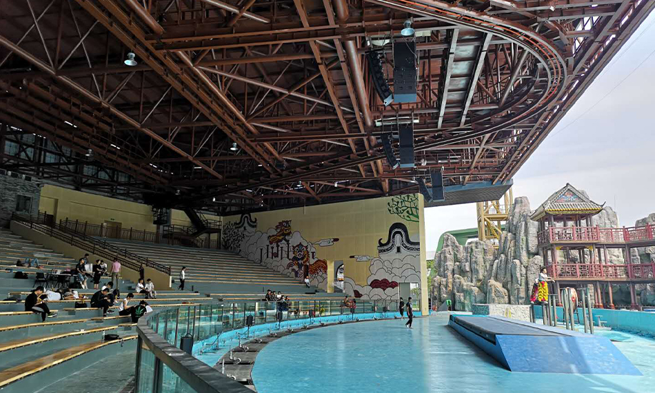 室外劇場:以室外舞臺設(shè)備為主,組成一場完整的室外劇場節(jié)目,本場演出位于廣州室外主題樂園的嶺南印象區(qū)域。